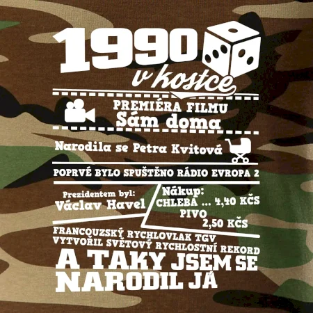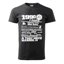 Narozeninové tričko pro ročník 1990. Sháníš originální dárek? Triko pro ročník 1990 v kostce je ten nejlepší dárek, kterým jistě potěšíš. Kolik co stálo? Kdo byl prezident? Kdo se narodil? Všechno tohle a ještě mnohem víc najdeš na našem oslaveneckém triku!