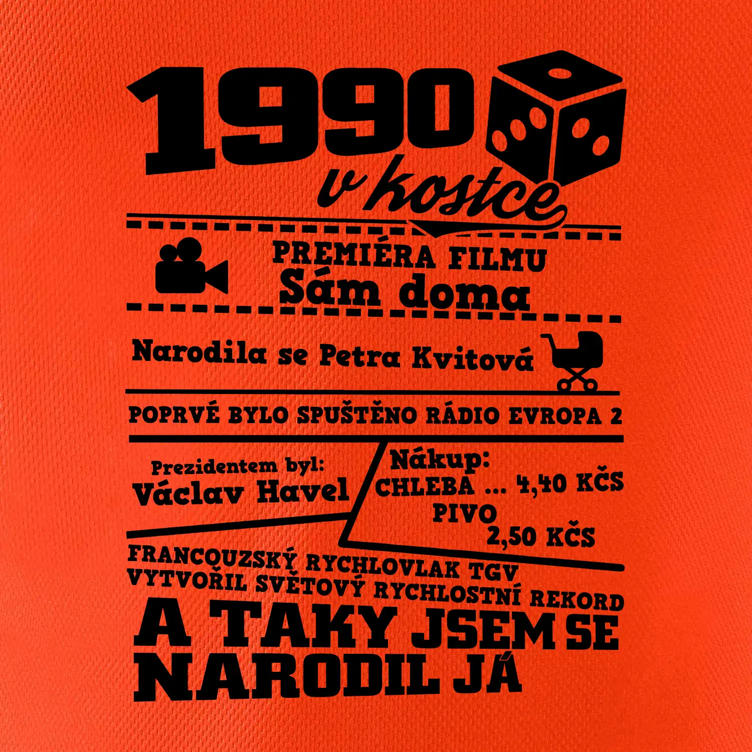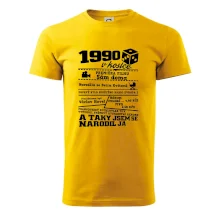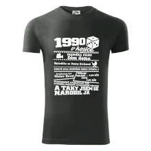Narozeninové tričko pro ročník 1990. Sháníš originální dárek? Triko pro ročník 1990 v kostce je ten nejlepší dárek, kterým jistě potěšíš. Kolik co stálo? Kdo byl prezident? Kdo se narodil? Všechno tohle a ještě mnohem víc najdeš na našem oslaveneckém triku!