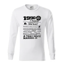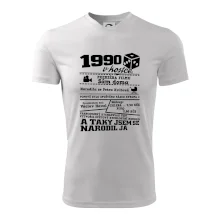 Narozeninové tričko pro ročník 1990. Sháníš originální dárek? Triko pro ročník 1990 v kostce je ten nejlepší dárek, kterým jistě potěšíš. Kolik co stálo? Kdo byl prezident? Kdo se narodil? Všechno tohle a ještě mnohem víc najdeš na našem oslaveneckém triku!