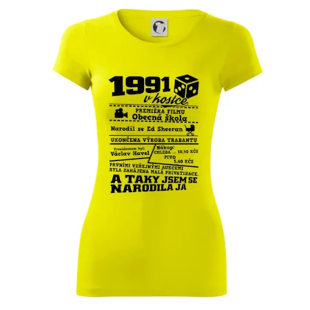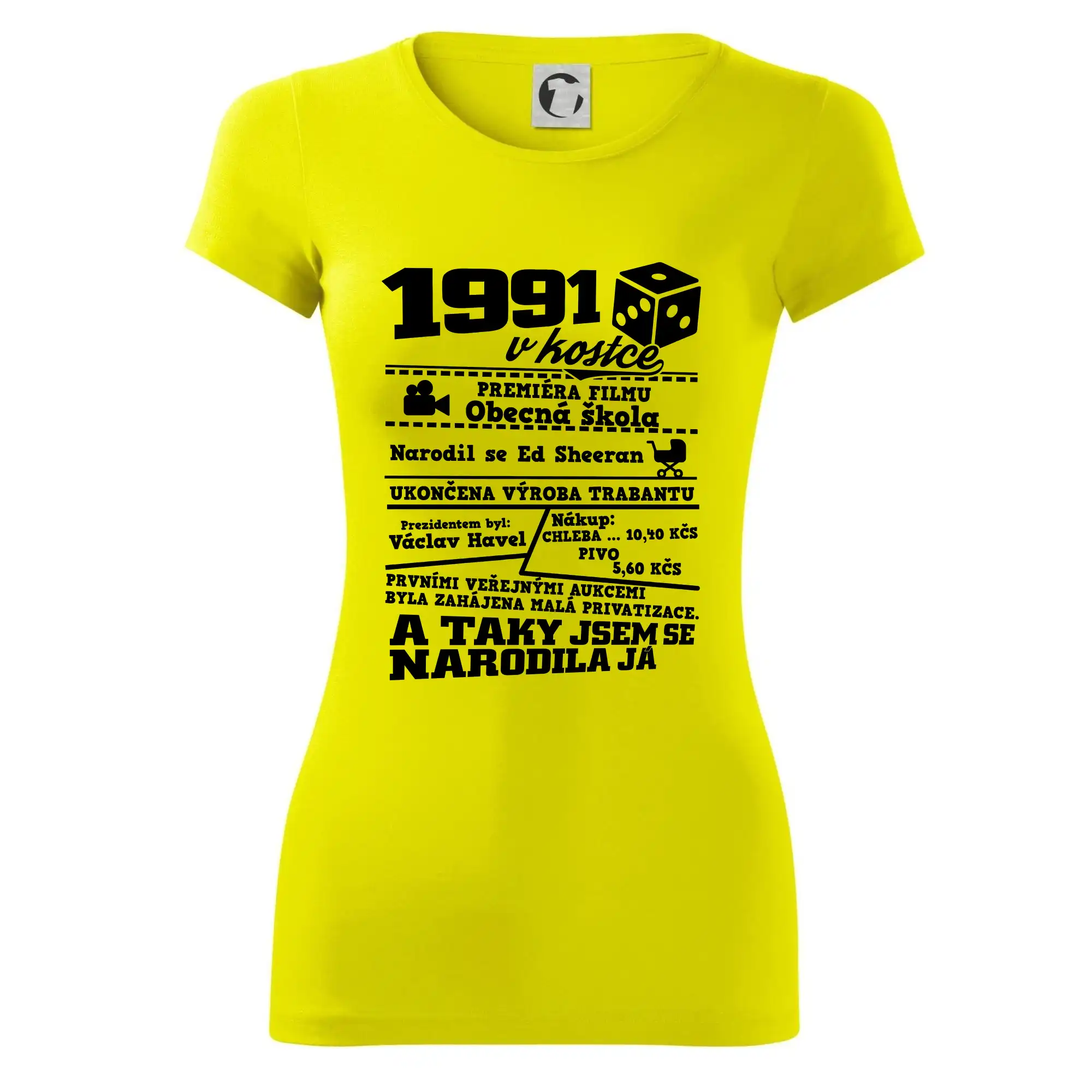 Narozeninové tričko pro ročník 1991. Sháníš originální dárek? Triko pro ročník 1991 v kostce je ten nejlepší dárek, kterým jistě potěšíš. Kolik co stálo? Kdo byl prezident? Kdo se narodil? Všechno tohle a ještě mnohem víc najdeš na našem oslaveneckém triku!