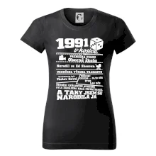 Narozeninové tričko pro ročník 1991. Sháníš originální dárek? Triko pro ročník 1991 v kostce je ten nejlepší dárek, kterým jistě potěšíš. Kolik co stálo? Kdo byl prezident? Kdo se narodil? Všechno tohle a ještě mnohem víc najdeš na našem oslaveneckém triku!