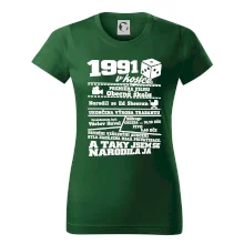 Narozeninové tričko pro ročník 1991. Sháníš originální dárek? Triko pro ročník 1991 v kostce je ten nejlepší dárek, kterým jistě potěšíš. Kolik co stálo? Kdo byl prezident? Kdo se narodil? Všechno tohle a ještě mnohem víc najdeš na našem oslaveneckém triku!