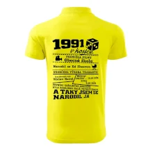Narozeninové tričko pro ročník 1991. Sháníš originální dárek? Triko pro ročník 1991 v kostce je ten nejlepší dárek, kterým jistě potěšíš. Kolik co stálo? Kdo byl prezident? Kdo se narodil? Všechno tohle a ještě mnohem víc najdeš na našem oslaveneckém triku!