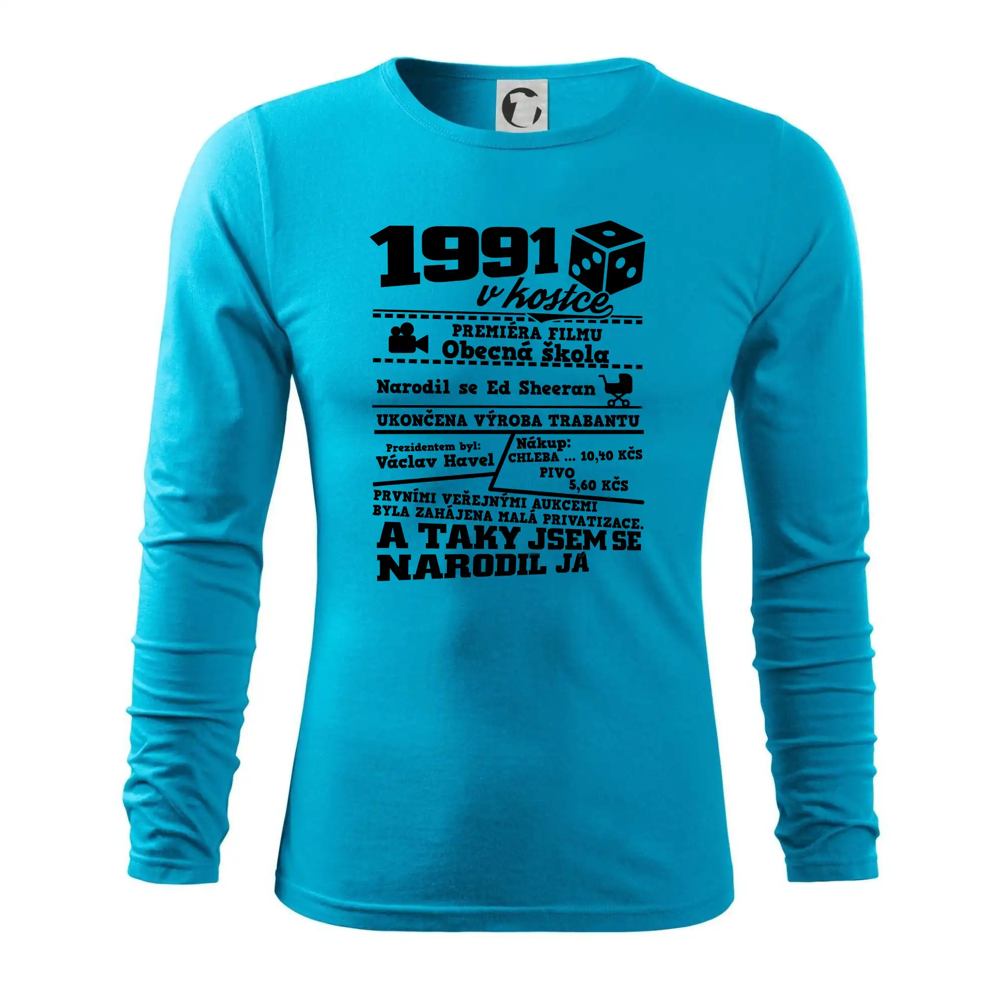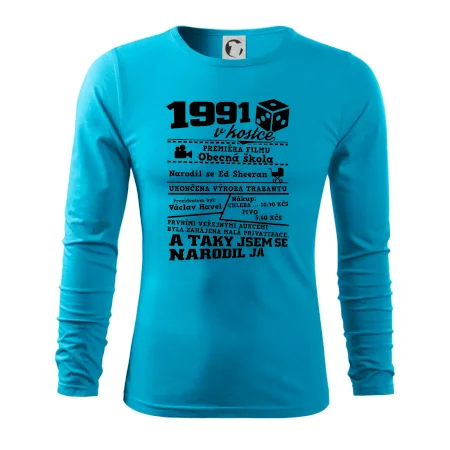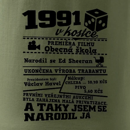 Narozeninové tričko pro ročník 1991. Sháníš originální dárek? Triko pro ročník 1991 v kostce je ten nejlepší dárek, kterým jistě potěšíš. Kolik co stálo? Kdo byl prezident? Kdo se narodil? Všechno tohle a ještě mnohem víc najdeš na našem oslaveneckém triku!