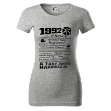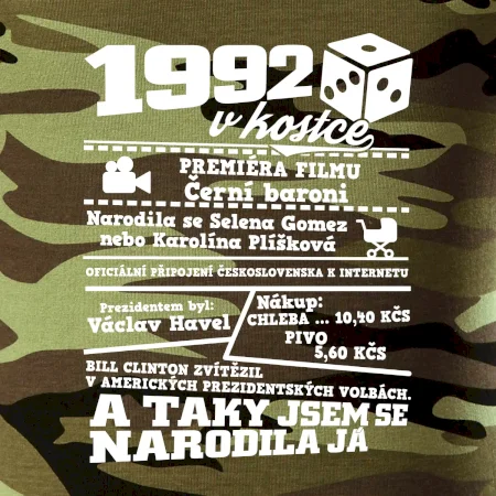 Narozeninové tričko pro ročník 1992. Sháníš originální dárek? Triko pro ročník 1992 v kostce je ten nejlepší dárek, kterým jistě potěšíš. Kolik co stálo? Kdo byl prezident? Kdo se narodil? Všechno tohle a ještě mnohem víc najdeš na našem oslaveneckém triku!