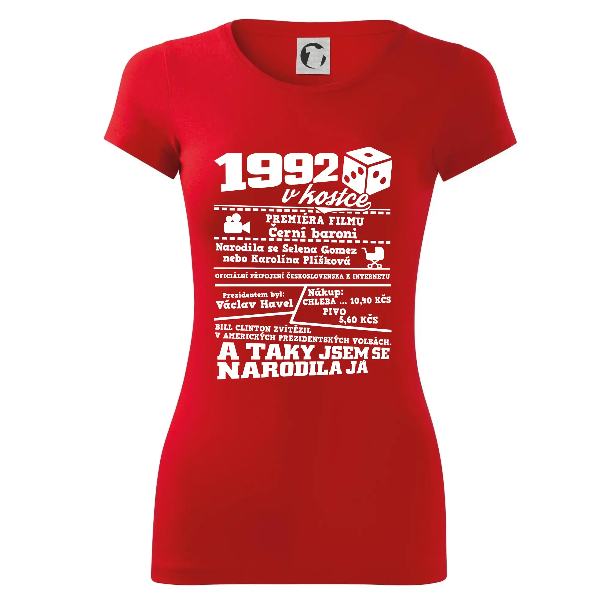 Narozeninové tričko pro ročník 1992. Sháníš originální dárek? Triko pro ročník 1992 v kostce je ten nejlepší dárek, kterým jistě potěšíš. Kolik co stálo? Kdo byl prezident? Kdo se narodil? Všechno tohle a ještě mnohem víc najdeš na našem oslaveneckém triku!