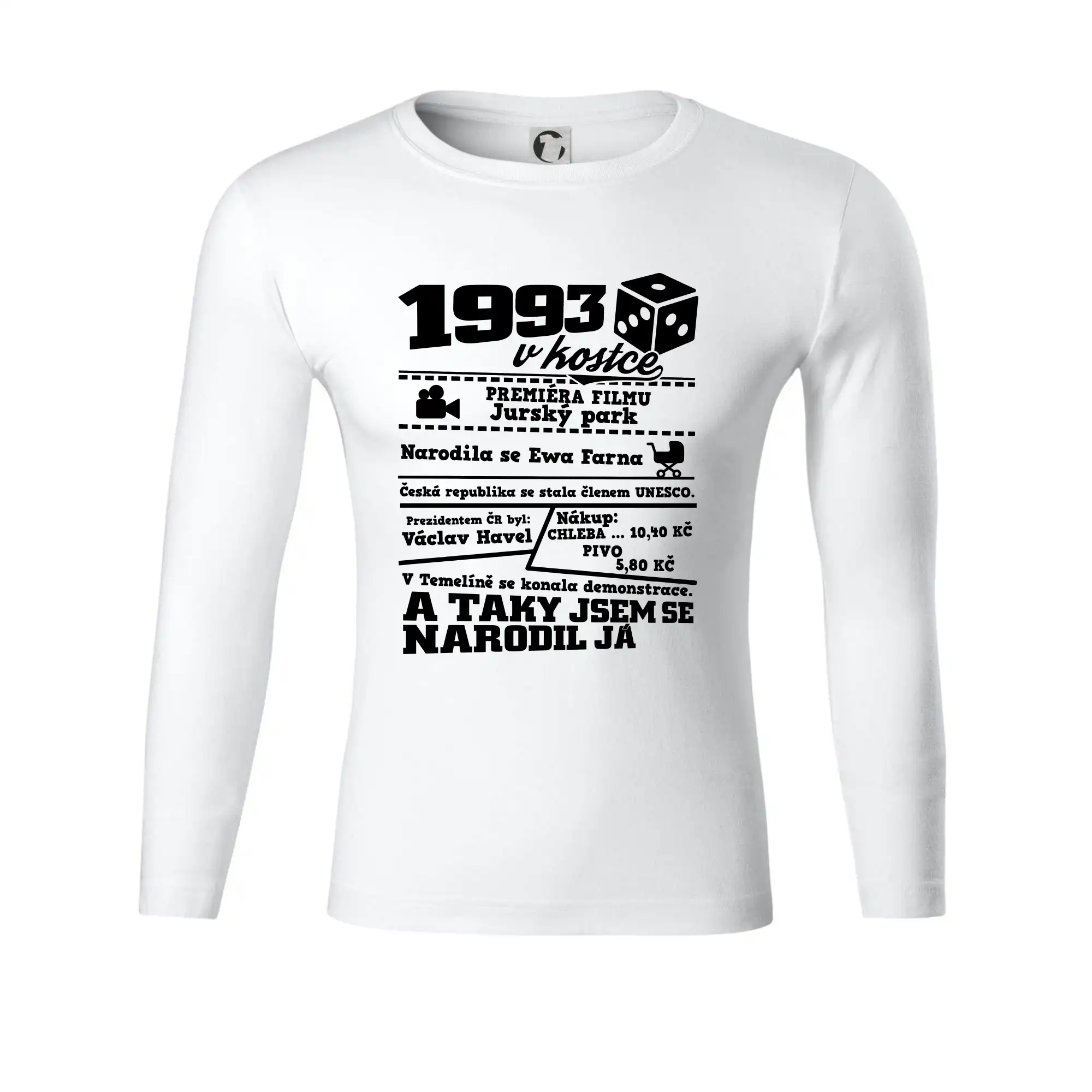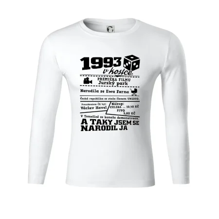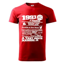 Narozeninové tričko pro ročník 1993. Sháníš originální dárek? Triko pro ročník 1993 v kostce je ten nejlepší dárek, kterým jistě potěšíš. Kolik co stálo? Kdo byl prezident? Kdo se narodil? Všechno tohle a ještě mnohem víc najdeš na našem oslaveneckém triku!