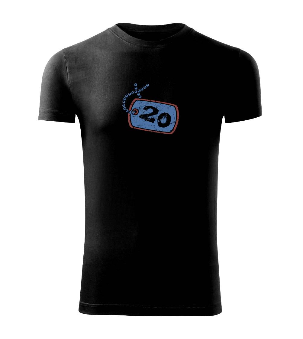 Narozeninové triko pro oslavence, který slaví jubileum 20 let. Triko na kterém je psí známka s číslovkou 20. Dárek ke dvacátinám. Triko ke dvacátým narozeninám.