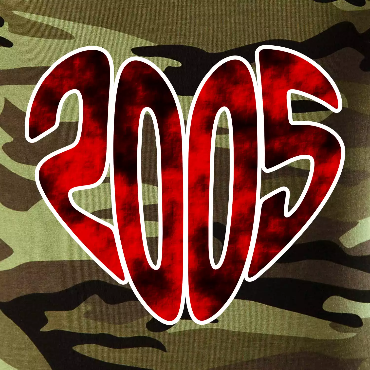 Tričko střední gramáže v barvách camouflage. Střih s bočními švy. Lem průkrčníku ze žebrového úpletu s přídavkem 5 % elastanu. Vnitřní část zadního průkrčníku začištěna páskou v barvě camouflage.
