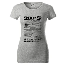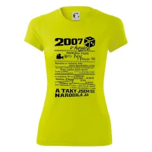 Narozeninové tričko pro ročník 2007. Sháníš originální dárek? Triko pro ročník 2007 v kostce je ten nejlepší dárek, kterým jistě potěšíš. Kolik co stálo? Kdo byl prezident? Kdo se narodil? Všechno tohle a ještě mnohem víc najdeš na našem oslaveneckém triku!