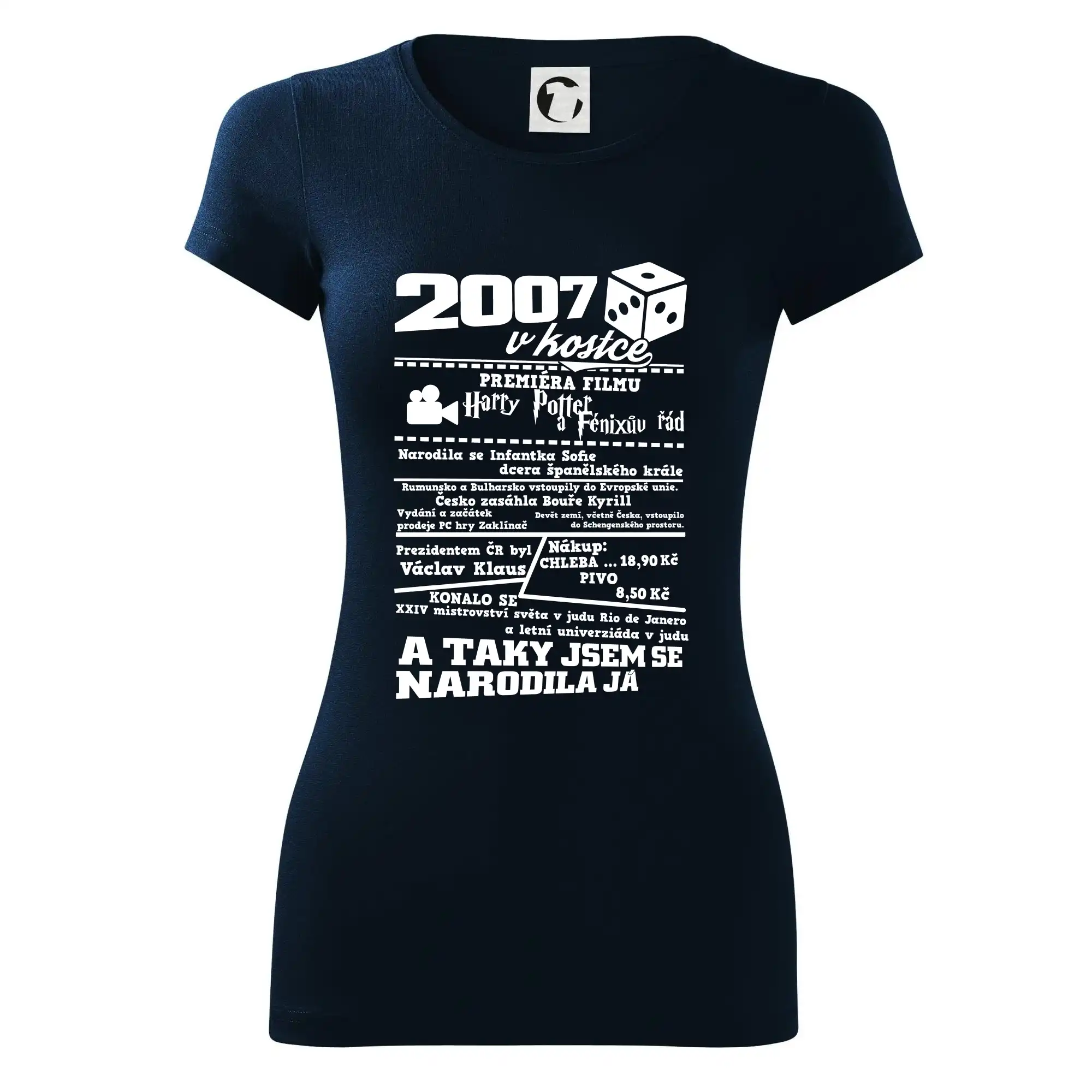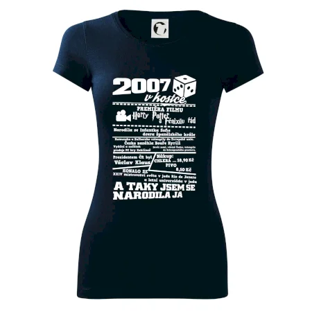 Narozeninové tričko pro ročník 2007. Sháníš originální dárek? Triko pro ročník 2007 v kostce je ten nejlepší dárek, kterým jistě potěšíš. Kolik co stálo? Kdo byl prezident? Kdo se narodil? Všechno tohle a ještě mnohem víc najdeš na našem oslaveneckém triku!