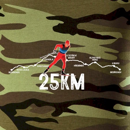 Tričko střední gramáže v barvách camouflage. Střih s bočními švy. Lem průkrčníku ze žebrového úpletu s přídavkem 5 % elastanu. Vnitřní část zadního průkrčníku začištěna páskou v barvě camouflage.