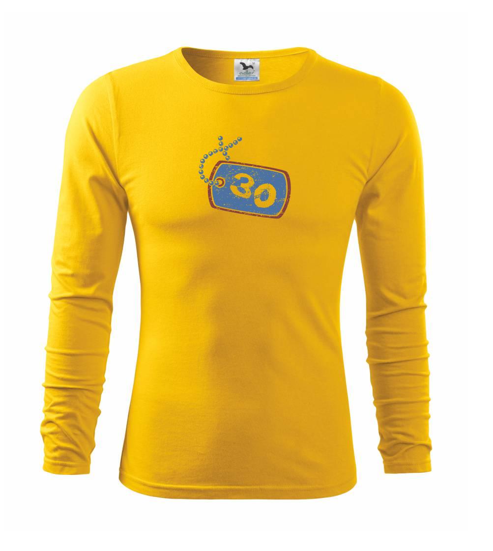 Narozeninové triko pro oslavence, který slaví jubileum 30 let. Triko na kterém je psí známka s číslovkou 30. Dárek ke třicátinám. Triko ke třicátým narozeninám.