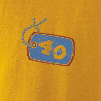 Narozeninové triko pro oslavence, který slaví jubileum 40 let. Triko na kterém je psí známka s číslovkou 40. Dárek ke čtyřicátinám. Triko ke čtyřicátým narozeninám.