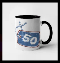 Narozeninové triko pro oslavence, který slaví jubileum 50 let. Triko na kterém je psí známka s číslovkou 50. Dárek k padesátinám. Triko k padesátým narozeninám.