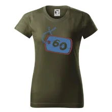 Narozeninové triko pro oslavence, který slaví jubileum 60 let. Triko na kterém je psí známka s číslovkou 60. Dárek k šedesátinám. Triko k šedesátým narozeninám.