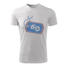 Narozeninové triko pro oslavence, který slaví jubileum 60 let. Triko na kterém je psí známka s číslovkou 60. Dárek k šedesátinám. Triko k šedesátým narozeninám.