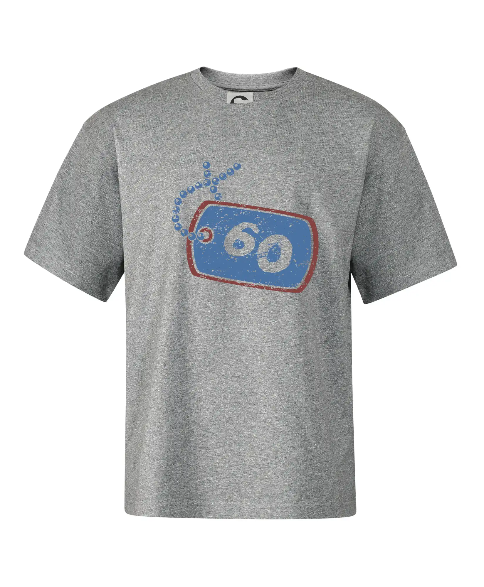 Narozeninové triko pro oslavence, který slaví jubileum 60 let. Triko na kterém je psí známka s číslovkou 60. Dárek k šedesátinám. Triko k šedesátým narozeninám.