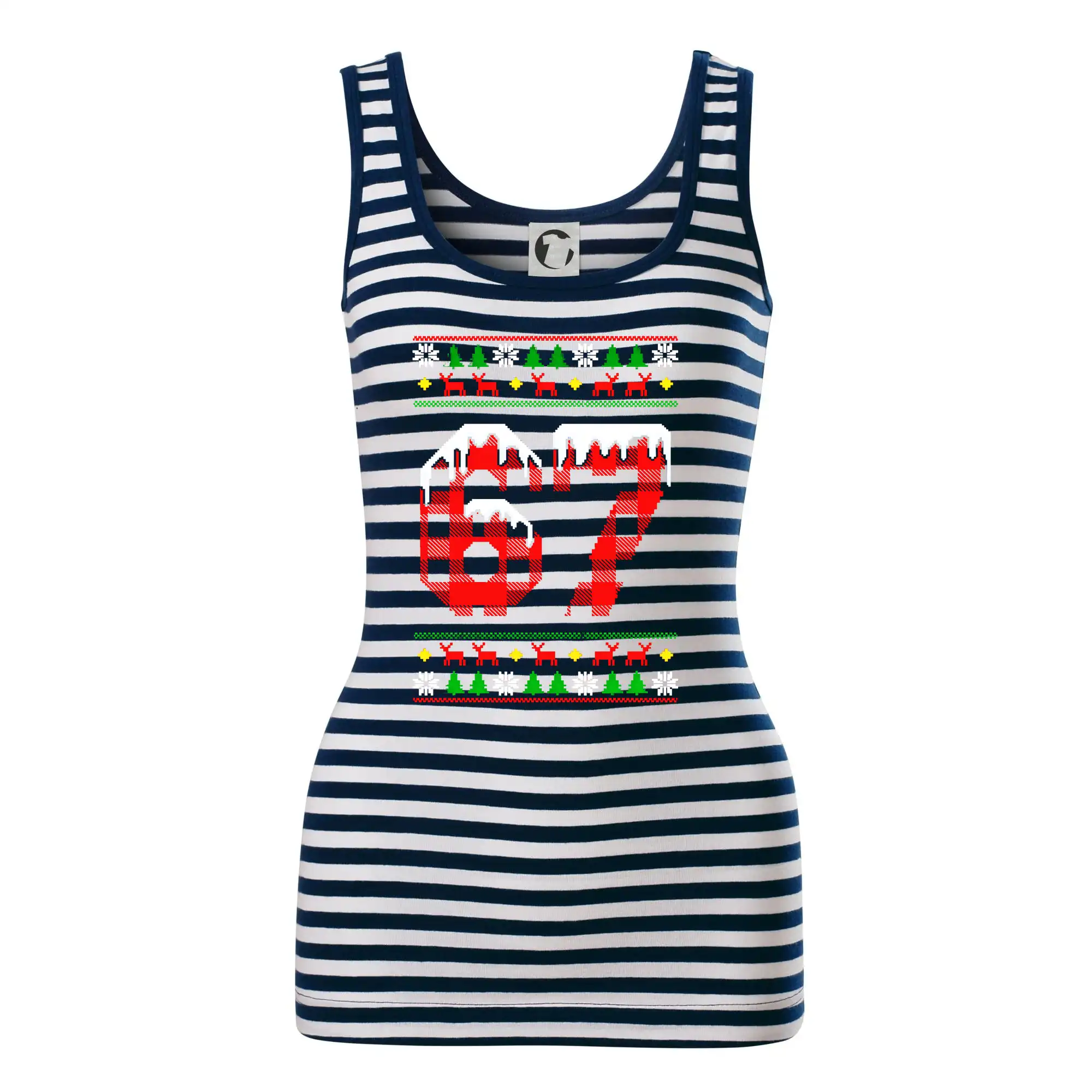 Dámské tílko MALFINI Sailor Top 806 přináší ikonický námořnický vzhled s bílo-modrými pruhy, ideální pro letní dny, výlety nebo ležérní outfity.