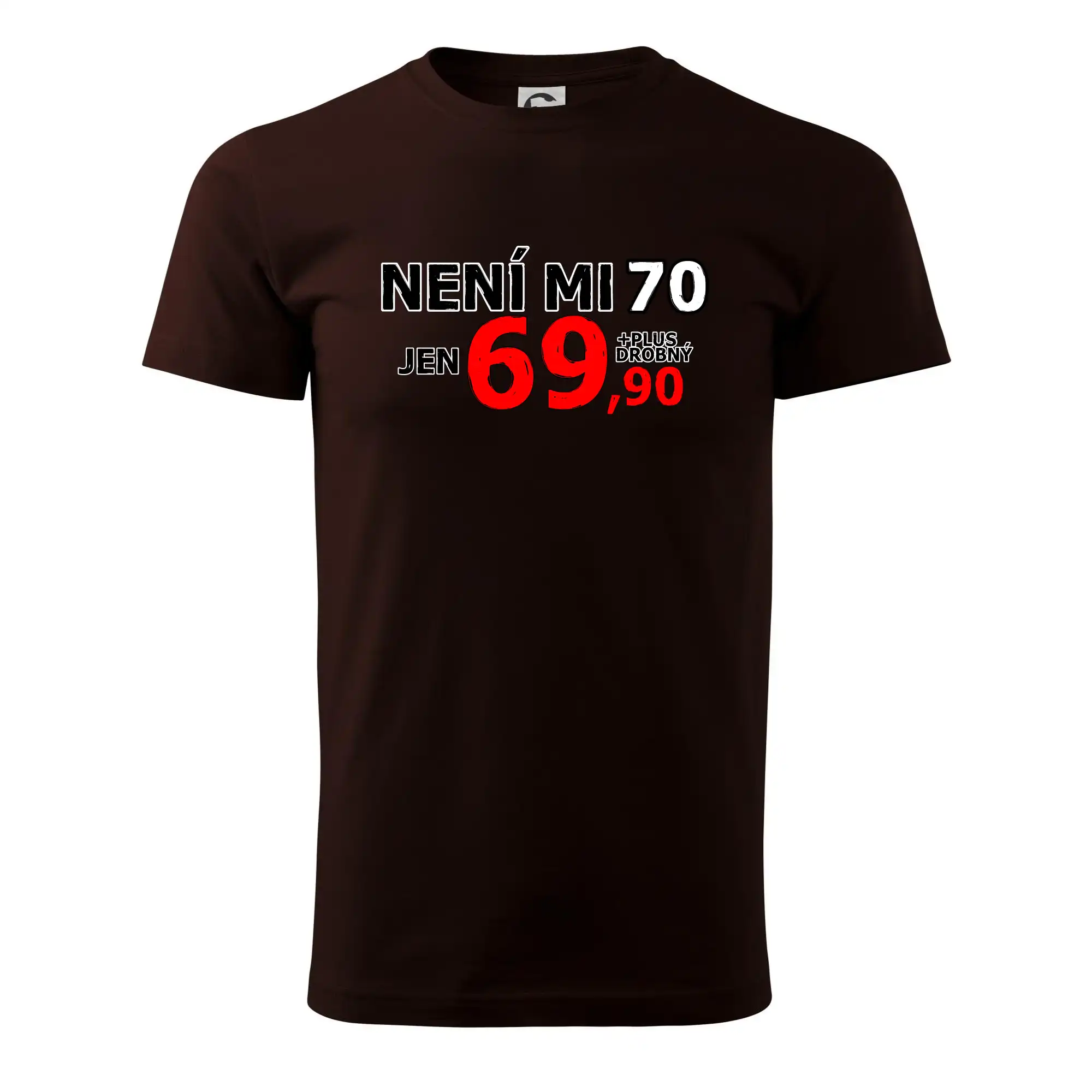 Narozeninové triko pro oslavence, který slaví jubileum 70 let. Triko na kterém je psí známka s číslovkou 70. Dárek k sedmdesátinám. Triko k sedmdesátým narozeninám.