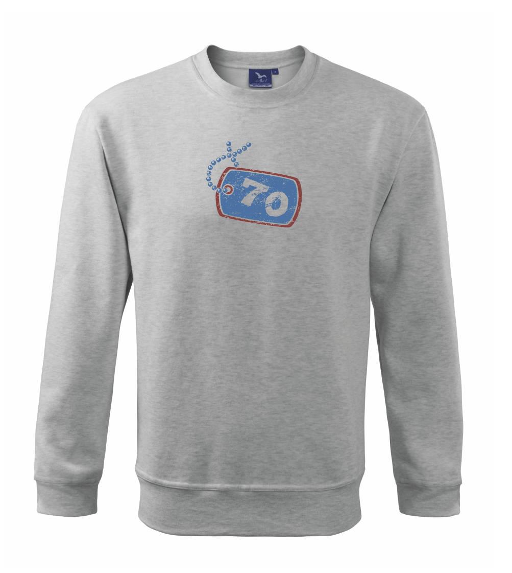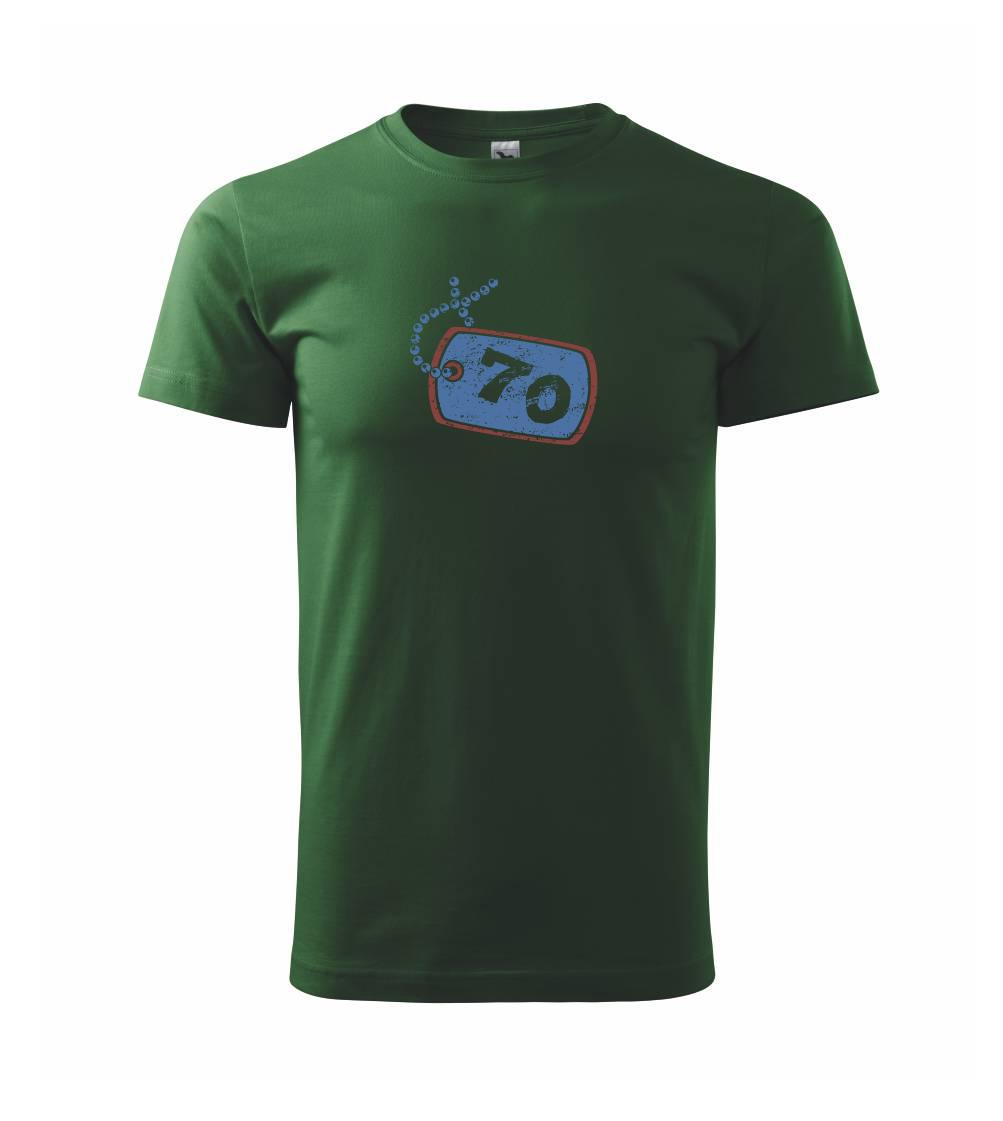 Narozeninové triko pro oslavence, který slaví jubileum 70 let. Triko na kterém je psí známka s číslovkou 70. Dárek k sedmdesátinám. Triko k sedmdesátým narozeninám.