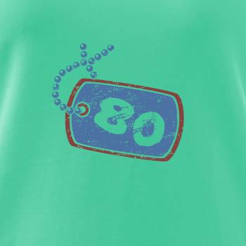 Narozeninové triko pro oslavence, který slaví jubileum 80 let. Triko na kterém je psí známka s číslovkou 80. Dárek k osmdesátinám. Triko k osmdesátým narozeninám.