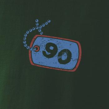 Narozeninové triko pro oslavence, který slaví jubileum 90 let. Triko na kterém je psí známka s číslovkou 90. Dárek k devadesátinám. Triko k devadesátým narozeninám.