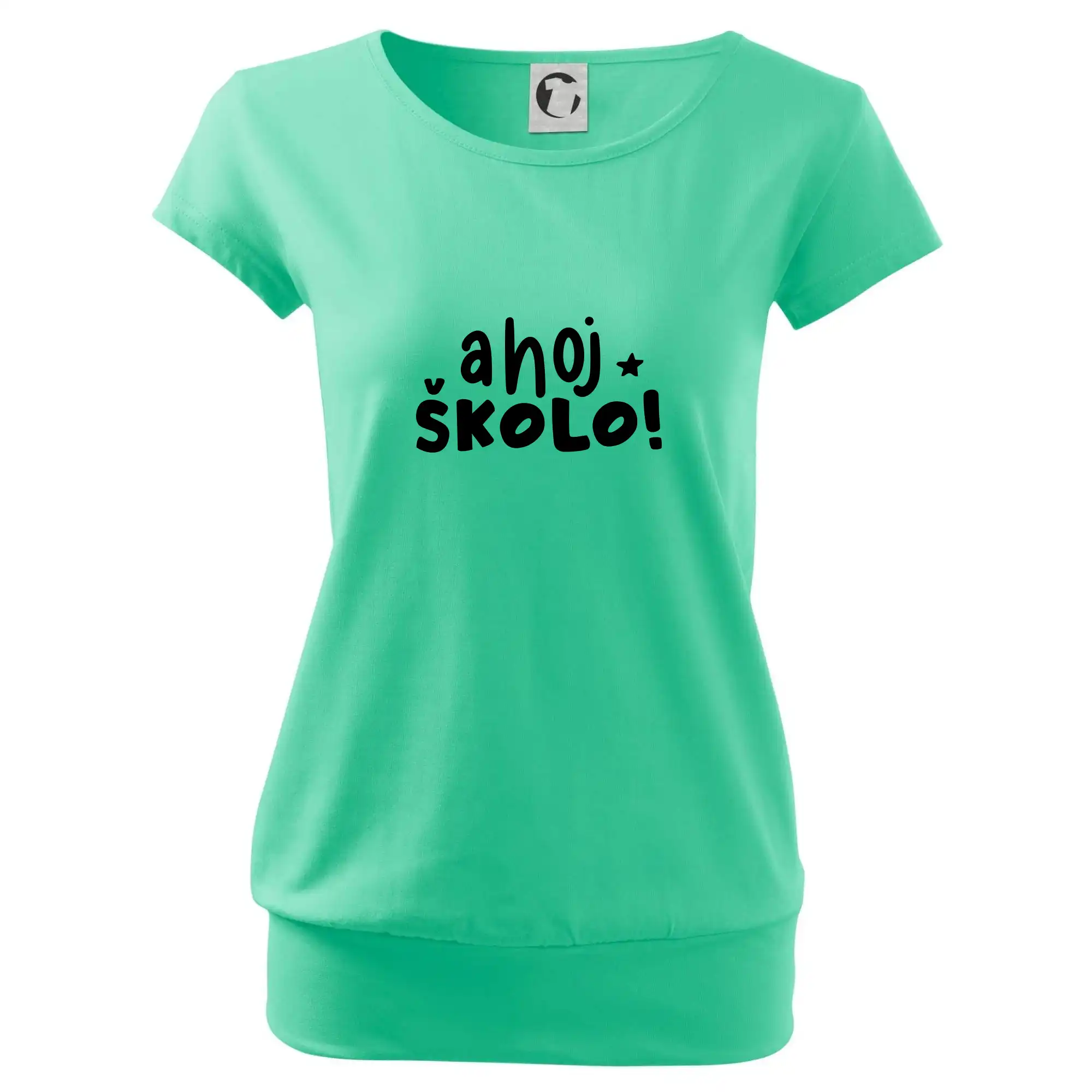 Trendové dámské triko s velmi krátkým rukávem, volnějšího střihu, v dolním kraji všité do širokého lemu. Kulatý průkrčník s úzkým lemem ze shodného materiálu.