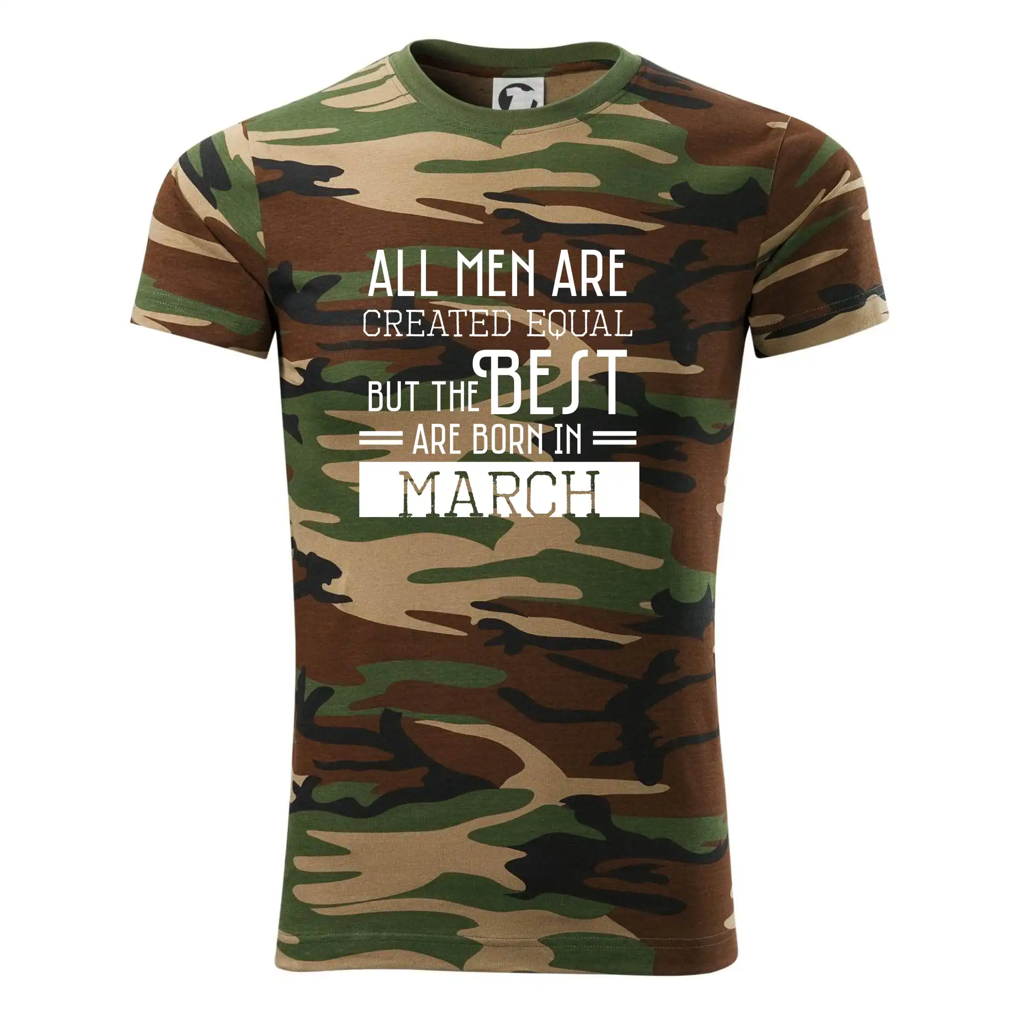 Tričko střední gramáže v barvách camouflage. Střih s bočními švy. Lem průkrčníku ze žebrového úpletu s přídavkem 5 % elastanu. Vnitřní část zadního průkrčníku začištěna páskou v barvě camouflage.