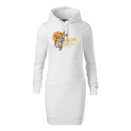Dámské mikinové šaty MALFINI Snap 419 jsou ideální volbou pro ženy, které hledají pohodlný a stylový kousek pro volný čas nebo každodenní nošení. Lehce vypasovaný střih s bočními švy podtrhuje ženskou siluetu, zatímco kapuce s podšívkou a stahovací šňůrkou dodává ležérní vzhled.