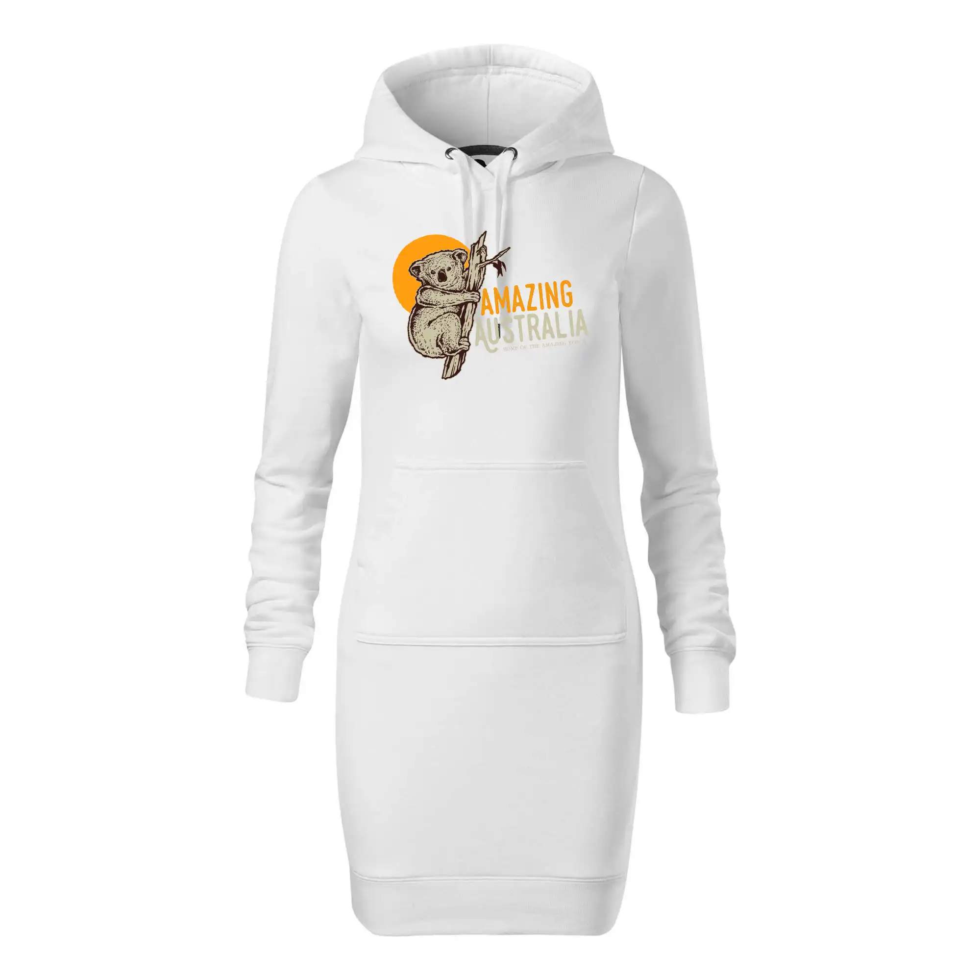 Dámské mikinové šaty MALFINI Snap 419 jsou ideální volbou pro ženy, které hledají pohodlný a stylový kousek pro volný čas nebo každodenní nošení. Lehce vypasovaný střih s bočními švy podtrhuje ženskou siluetu, zatímco kapuce s podšívkou a stahovací šňůrkou dodává ležérní vzhled. Šaty mají délku nad kolena a jsou vybaveny nakládanou kapsou ve stylu „klokanky“. Materiál je měkký a příjemný na dotek díky směsi bavlny a polyesteru s nepočesanou vnitřní stranou.