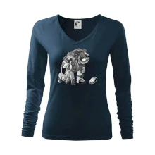 Tolerantnější vypasování dámského střihu, který je vhodný pro všechny typy postavy, ideální délka rukávů a konzervativní výstřih zakončený žebrováním, které skvěle drží tvar.