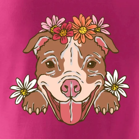 Americký stafordširský teriér hlava s květinami