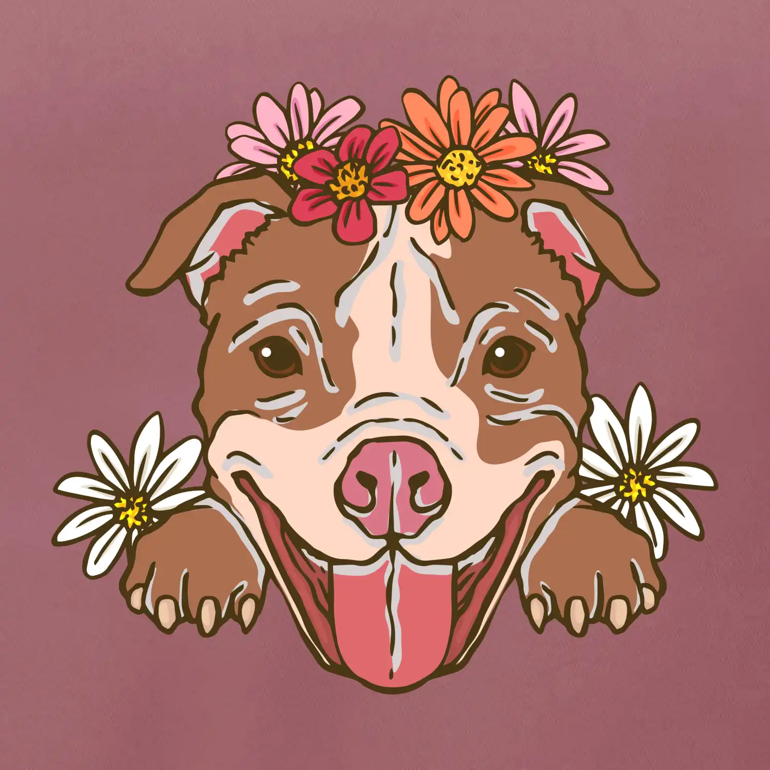 Americký stafordširský teriér hlava s květinami