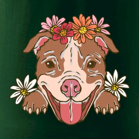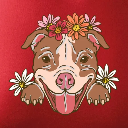 Americký stafordširský teriér hlava s květinami