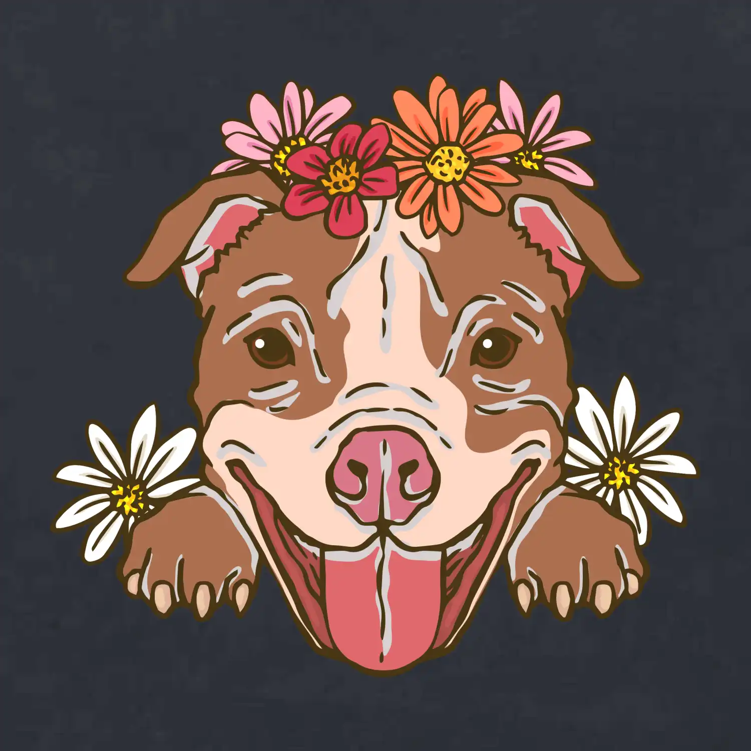 Americký stafordširský teriér hlava s květinami