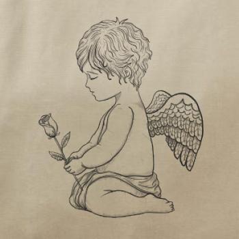 Andílek kresleny s růží