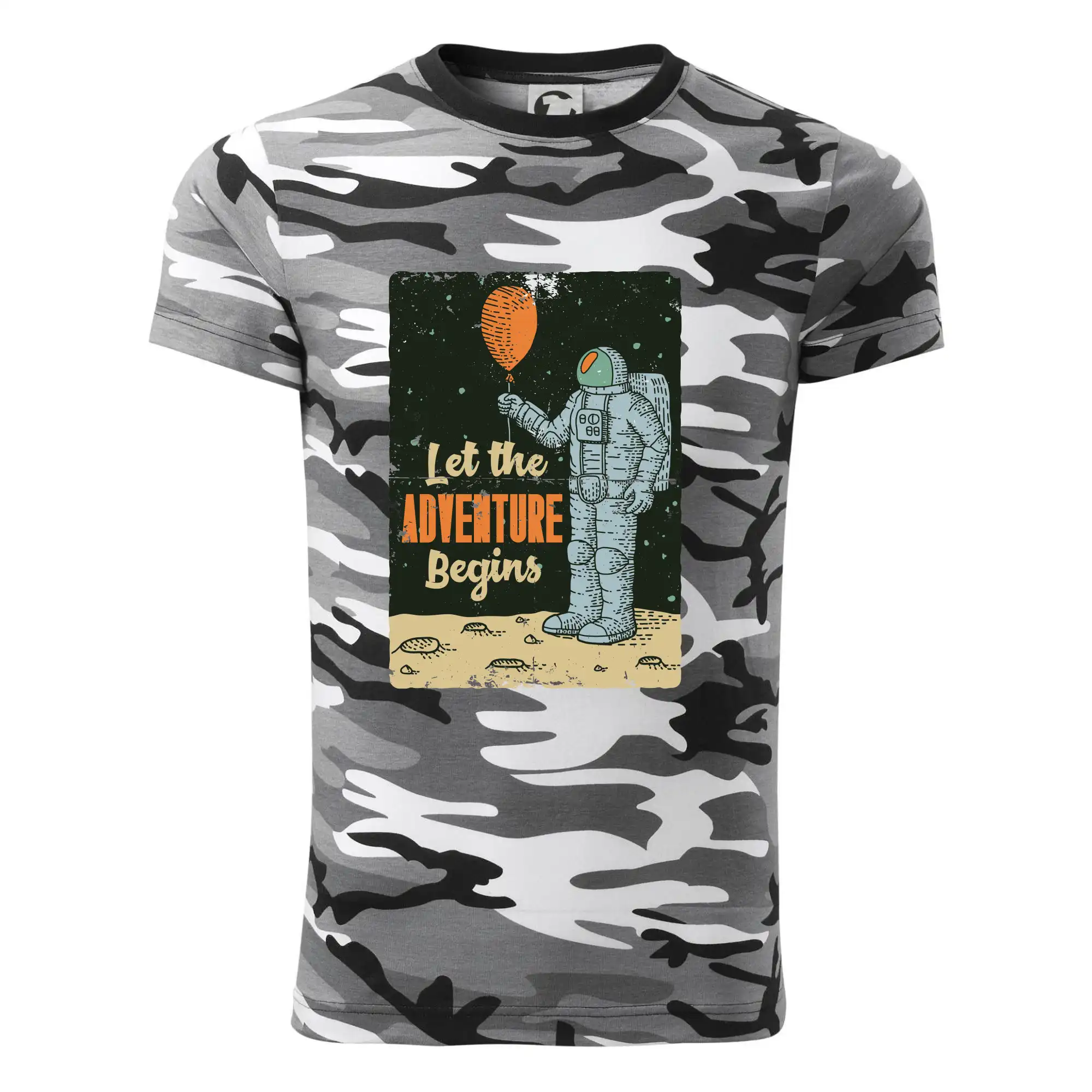 Tričko střední gramáže v barvách camouflage. Střih s bočními švy. Lem průkrčníku ze žebrového úpletu s přídavkem 5 % elastanu. Vnitřní část zadního průkrčníku začištěna páskou v barvě camouflage.