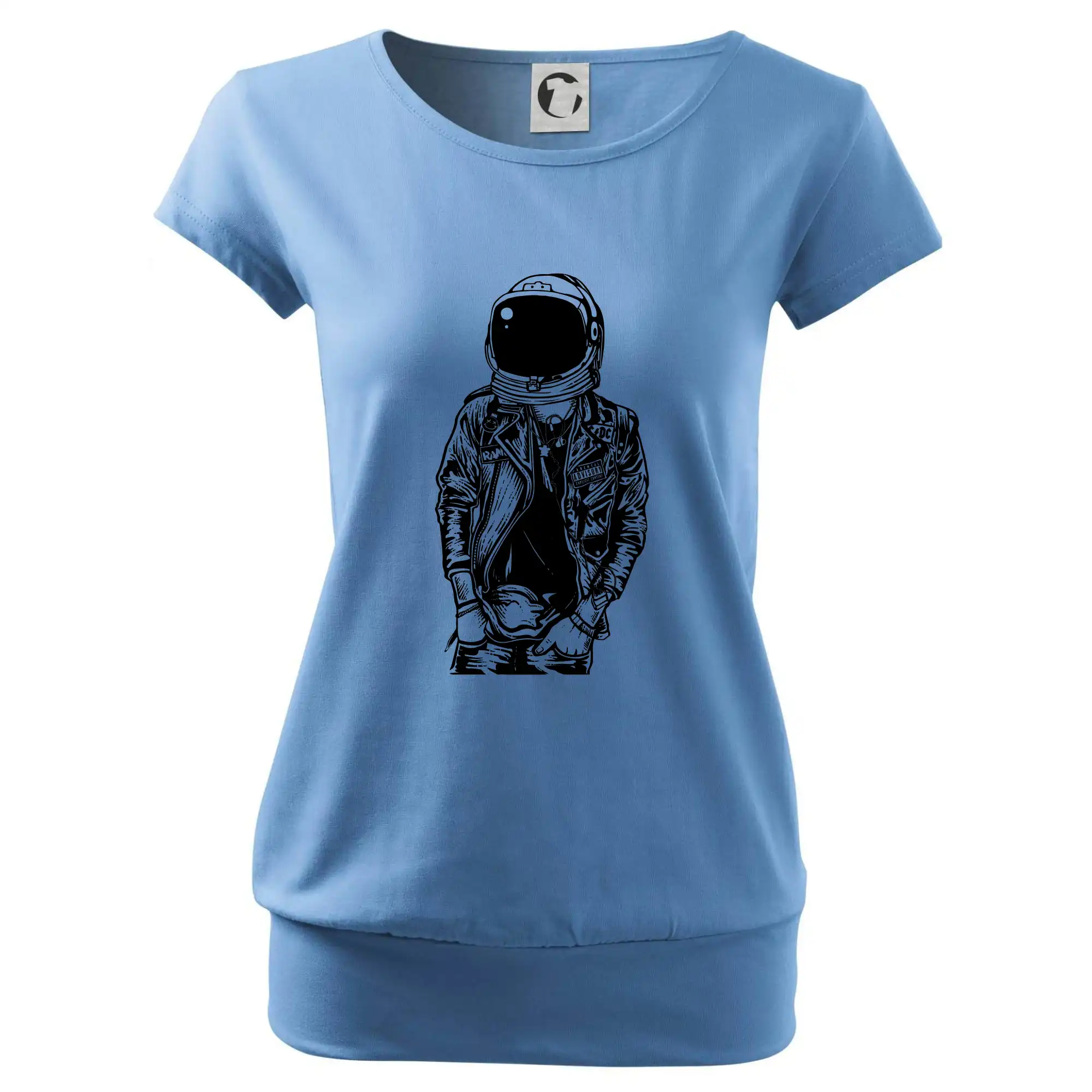 Trendové dámské triko s velmi krátkým rukávem, volnějšího střihu, v dolním kraji všité do širokého lemu. Kulatý průkrčník s úzkým lemem ze shodného materiálu.