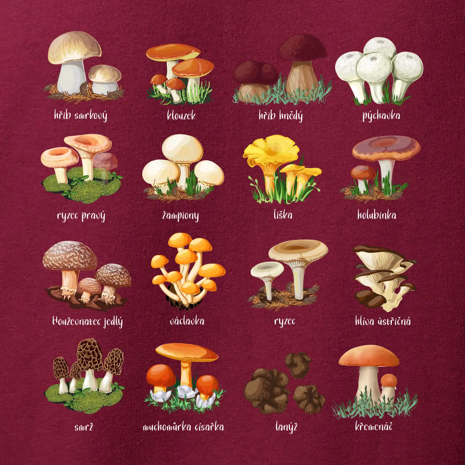 Atlas hub na tričko i kojenecké body. Radost pro houbaře i mykology. Zvolte barvu a velikost, klidně přidejte jméno. Objevte originál! ☆ →