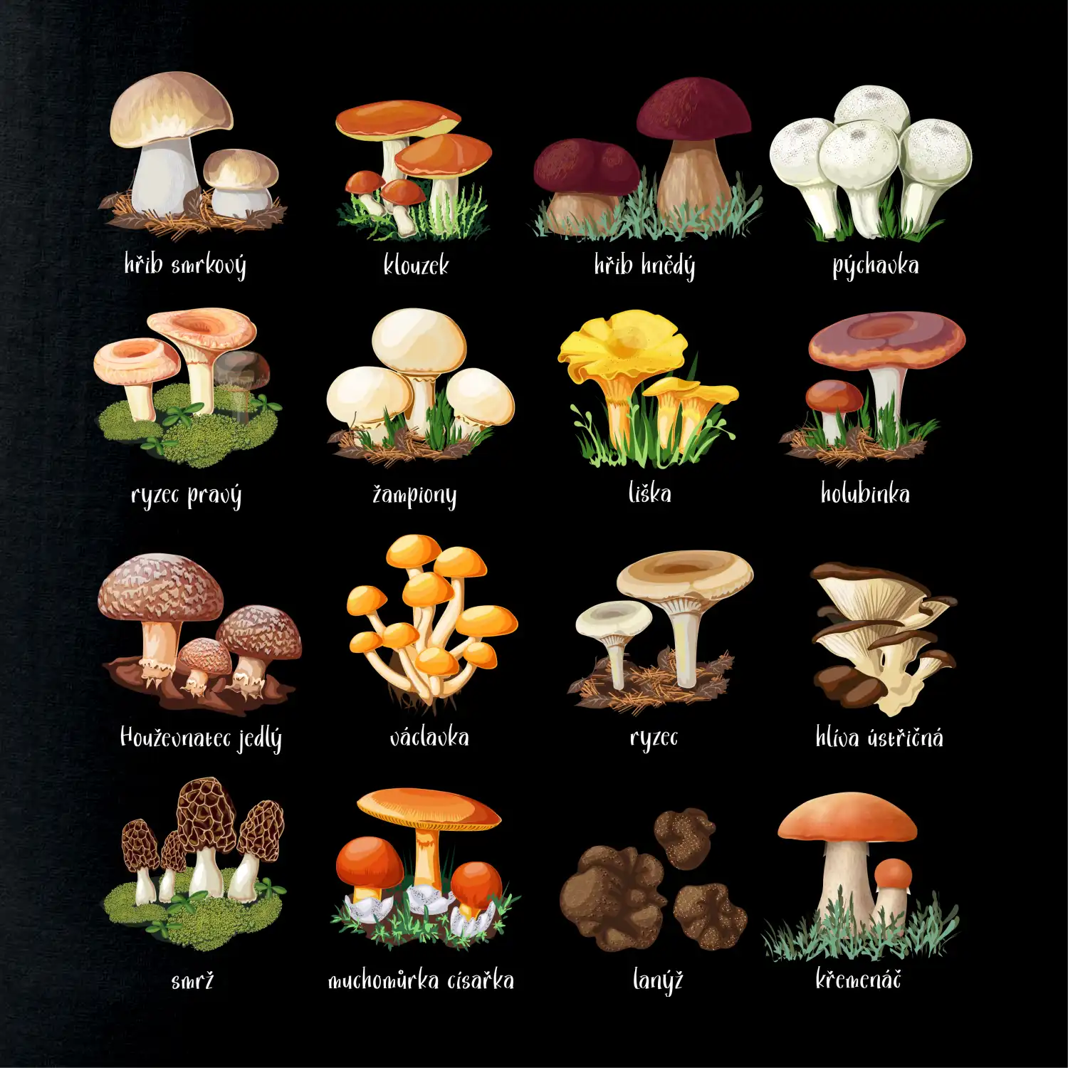 Atlas hub na tričko i kojenecké body. Radost pro houbaře i mykology. Zvolte barvu a velikost, klidně přidejte jméno. Objevte originál! ☆ →