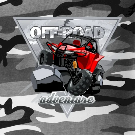 Triko pro motoristy, na kterém je červená buggy čtyřkolka ATV. Motoristické triko kde je off-road čtyřkolka musí mít doma každý motorista. Triko s autem je vhodný dárek pro motoristu. Off road bugina na triku je jako živá, prostě parádní auto.
