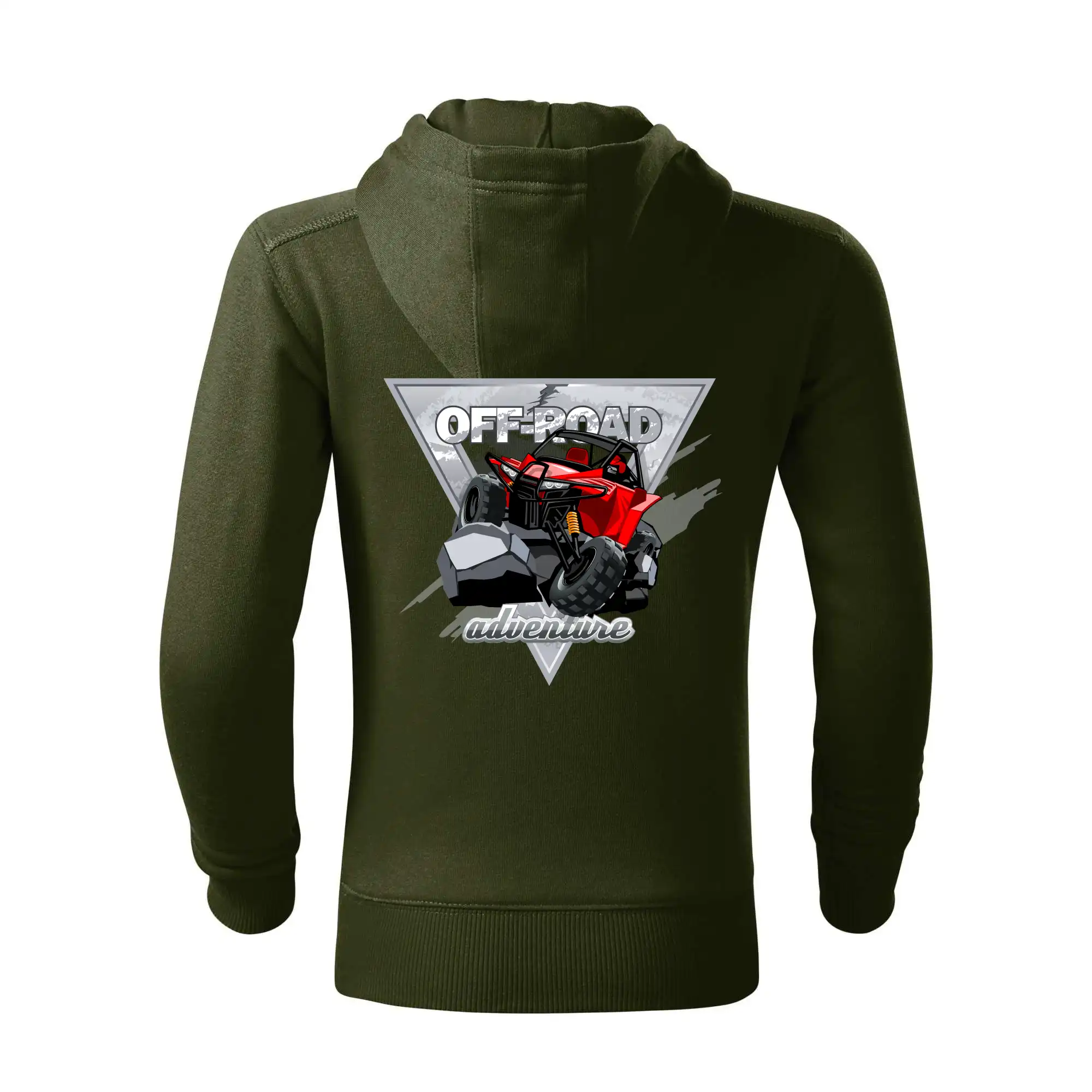 Triko pro motoristy, na kterém je červená buggy čtyřkolka ATV. Motoristické triko kde je off-road čtyřkolka musí mít doma každý motorista. Triko s autem je vhodný dárek pro motoristu. Off road bugina na triku je jako živá, prostě parádní auto.