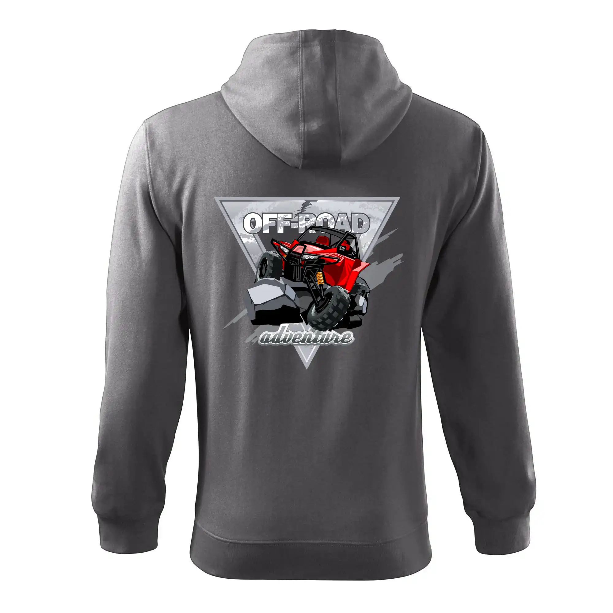 Triko pro motoristy, na kterém je červená buggy čtyřkolka ATV. Motoristické triko kde je off-road čtyřkolka musí mít doma každý motorista. Triko s autem je vhodný dárek pro motoristu. Off road bugina na triku je jako živá, prostě parádní auto.