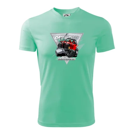 Triko pro motoristy, na kterém je červená buggy čtyřkolka ATV. Motoristické triko kde je off-road čtyřkolka musí mít doma každý motorista. Triko s autem je vhodný dárek pro motoristu. Off road bugina na triku je jako živá, prostě parádní auto.