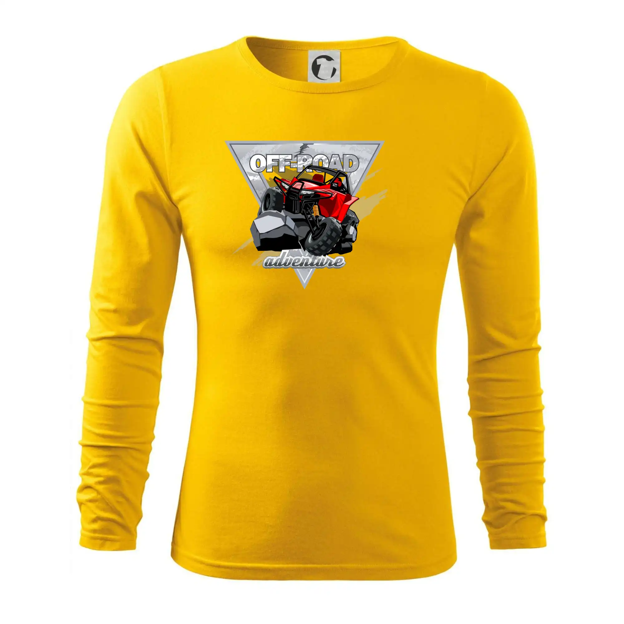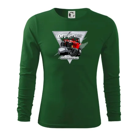 Triko pro motoristy, na kterém je červená buggy čtyřkolka ATV. Motoristické triko kde je off-road čtyřkolka musí mít doma každý motorista. Triko s autem je vhodný dárek pro motoristu. Off road bugina na triku je jako živá, prostě parádní auto.