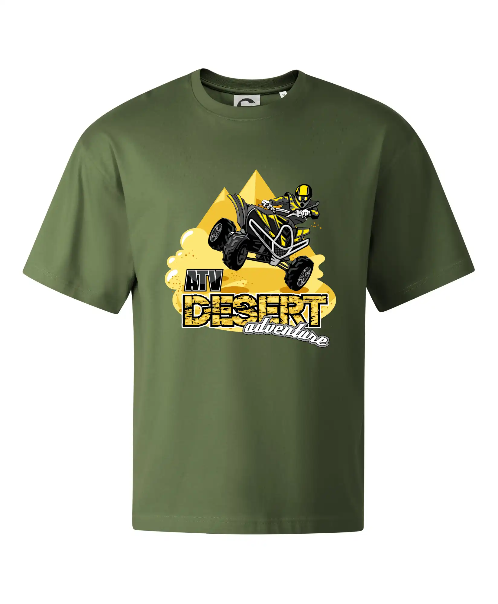 Triko pro motoristu, na kterém je atv čtyřkolka, v pozadí je poušť a pyramidy. Triko se čtyřkolkou, na kterém je i pyramida, by doma měl mít každý správný off-road motorista. Triko se čtyřkolkou je vhodný dárek pro motoristu, pro kterého je jízda na čtyřkolce ten pravý adrenalin a motorsport je jeho život.