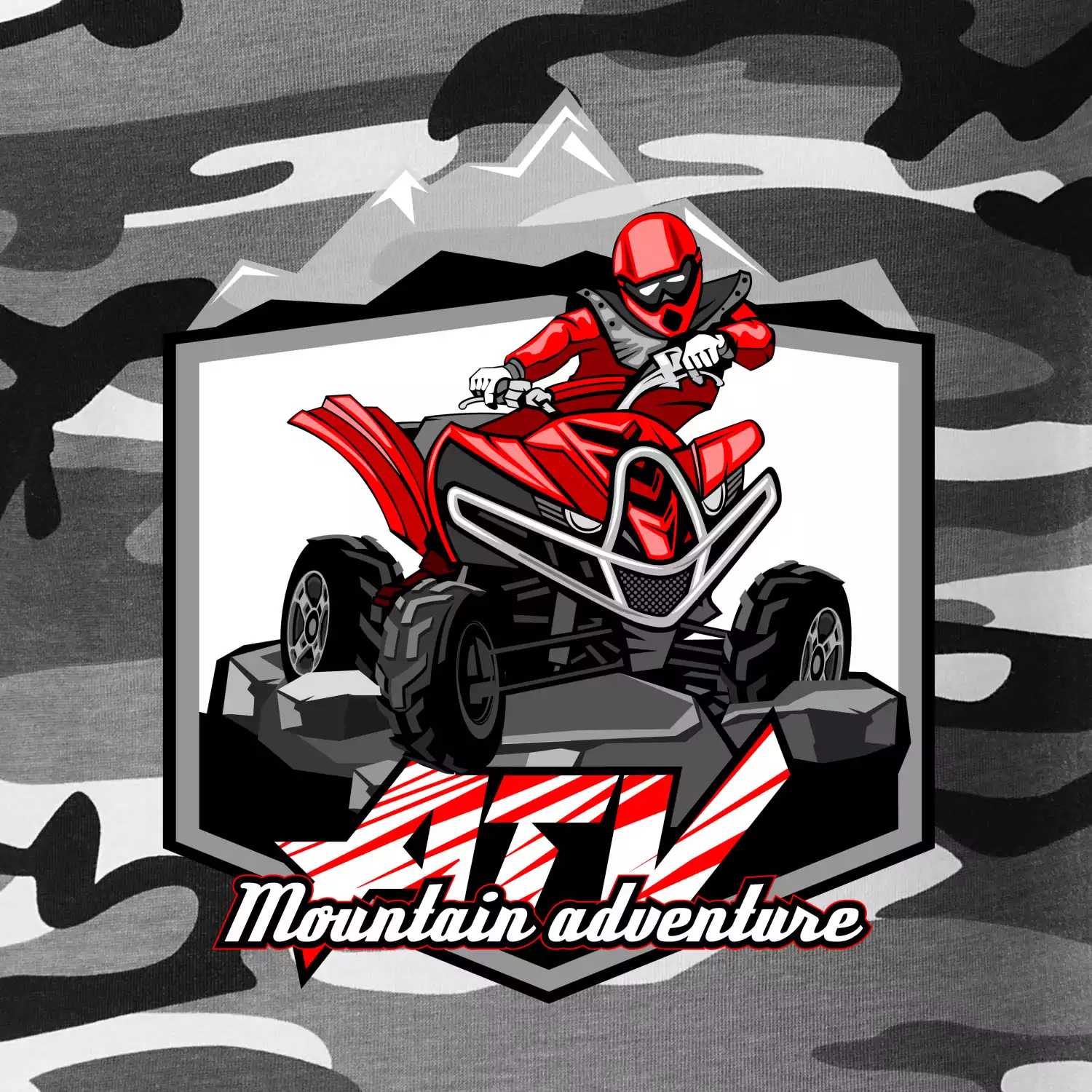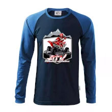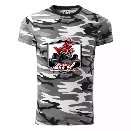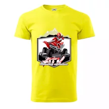 Triko pro motoristy, na kterém je červená čtyřkolka ATV a v pozadí hory. Motoristické triko kde je off road čtyřkolka musí mít doma každý motorista. Triko se čtyřkolkou je vhodný dárek pro motoristu, který má rád adrenalin. Čtyřkolka na triku je jako živá, prostě parádní auto.