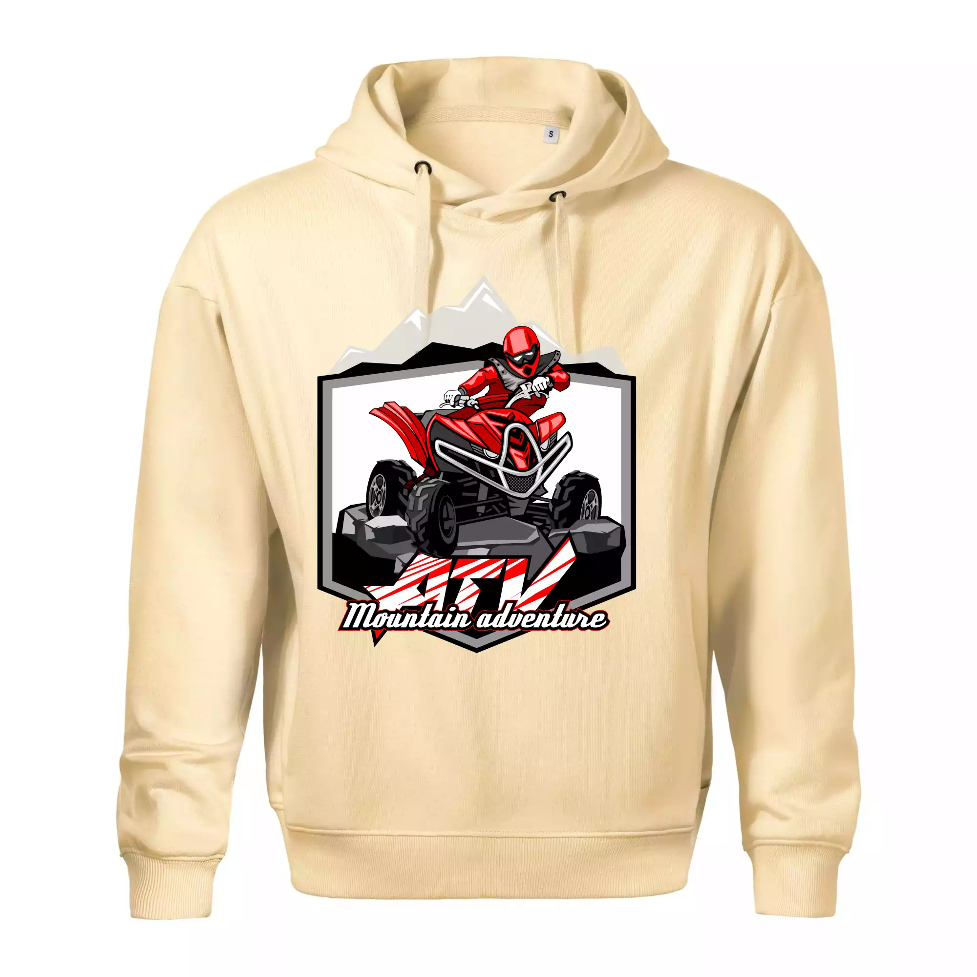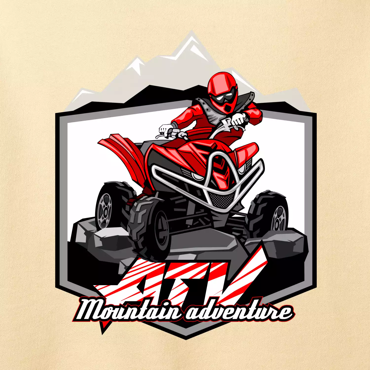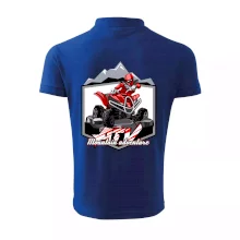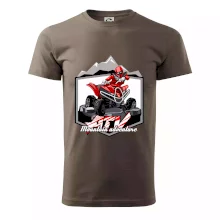 Triko pro motoristy, na kterém je červená čtyřkolka ATV a v pozadí hory. Motoristické triko kde je off road čtyřkolka musí mít doma každý motorista. Triko se čtyřkolkou je vhodný dárek pro motoristu, který má rád adrenalin. Čtyřkolka na triku je jako živá, prostě parádní auto.