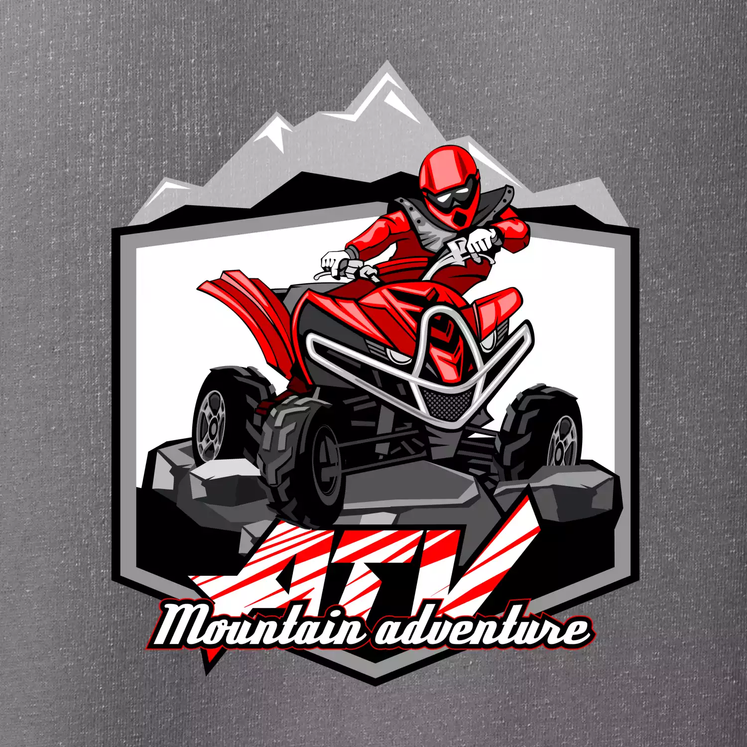 Triko pro motoristy, na kterém je červená čtyřkolka ATV a v pozadí hory. Motoristické triko kde je off road čtyřkolka musí mít doma každý motorista. Triko se čtyřkolkou je vhodný dárek pro motoristu, který má rád adrenalin. Čtyřkolka na triku je jako živá, prostě parádní auto.